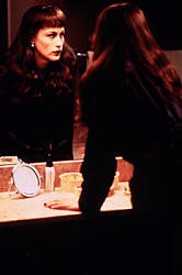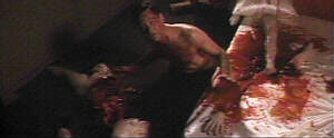THE DEAD BODY OF RENEE lies on the floor at the foot of the bed. She is badly mutilated.