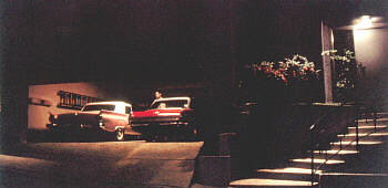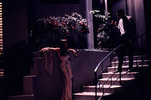 Fred is hovering over her on the tape, ON HIS KNEES, A HORRIFIED, UNBELIEVING EXPRESSION ON HIS FACE. On the tape, Fred turns away from Renee - his hands raised, dripping blood - her blood. His movements are almost mechanical, constricted, as he strains strangely upwards seemingly against his will, as if feeling