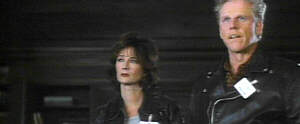 Pete's parents, BILL and CLAIRE DAYTON, escorted by a PRISON
