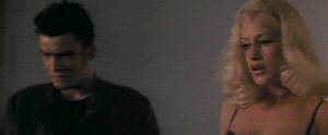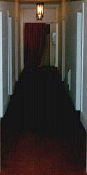 ![]() Andy's House: A movie projector is running in the living room. A porno film is being projected on a huge screen at the far end. Alice is in the porno film. A man is fucking her from behind - with LOUD SLAPPING SOUNDS of flesh banging flesh. Her face is in the foreground. Her eyes look out directly at Pete. She is loving every minute of it. Inside Pete, jealousy starts to rage out of control. He looks around. He sees clothes scattered about. He picks up a girl's sweater and smells it. He looks up the stairs.