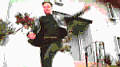 Fred drives up to his house in Mr. Eddy/Laurent's Mercedes 600 Pullman and stops in front. He gets out of the car, goes to the front door and RINGS THE DOORBELL. There is a BEEP sound.